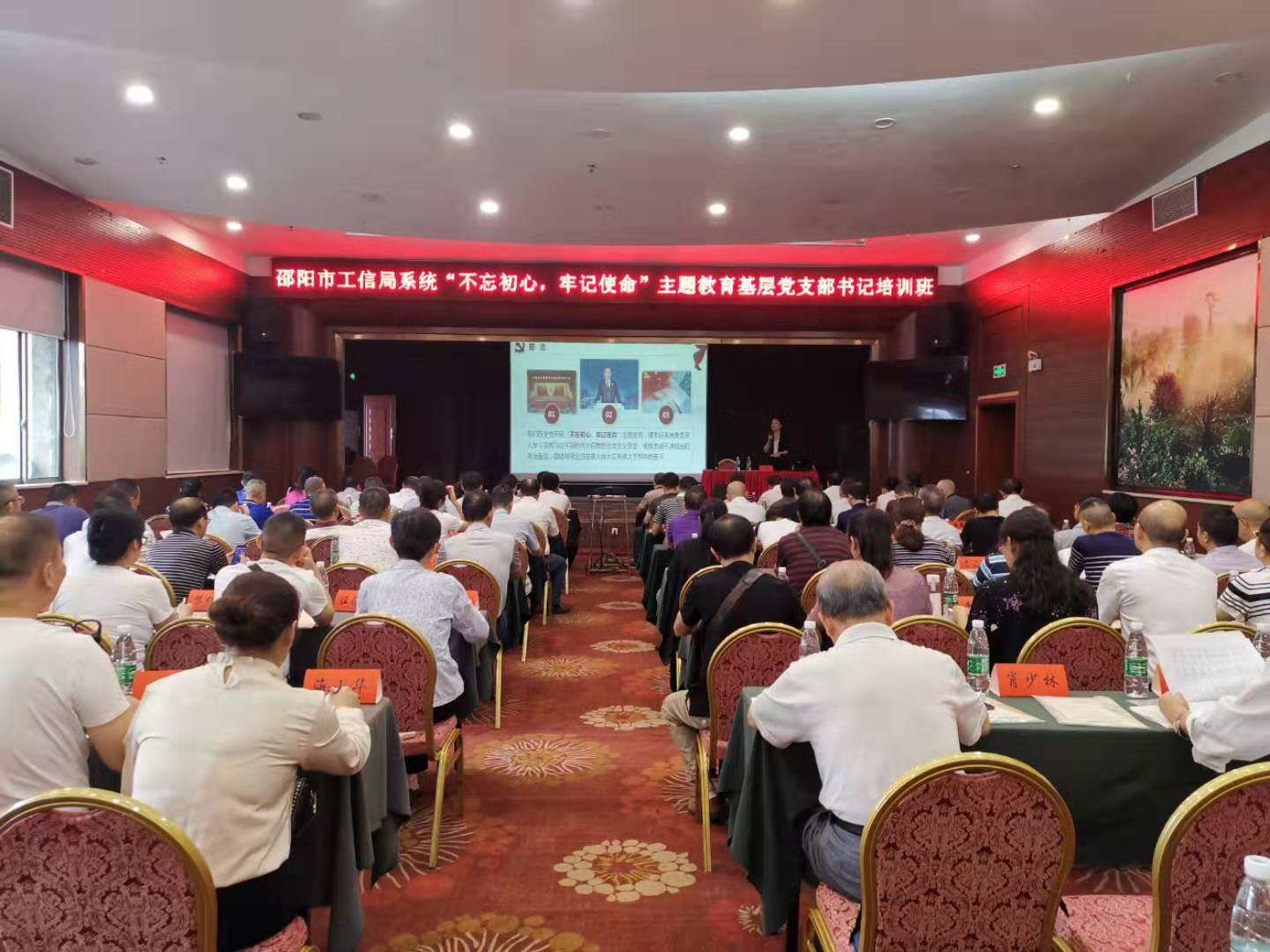 根据上级党委“不忘初心、牢记使命”主题教育的有关要求,结合邵阳市委《关于认真开展基层党组织书记轮训工作的通知》要求,国庆前夕,邵阳市工信局在白宫城3楼会议室开展了“不忘初心、牢记使命”主题教育党支部书记培训班,工信局系统所辖九个单位共100余名支部书记参加,邵阳纺机公司24名支部书记、1名党建专干参加了此次集中培训。