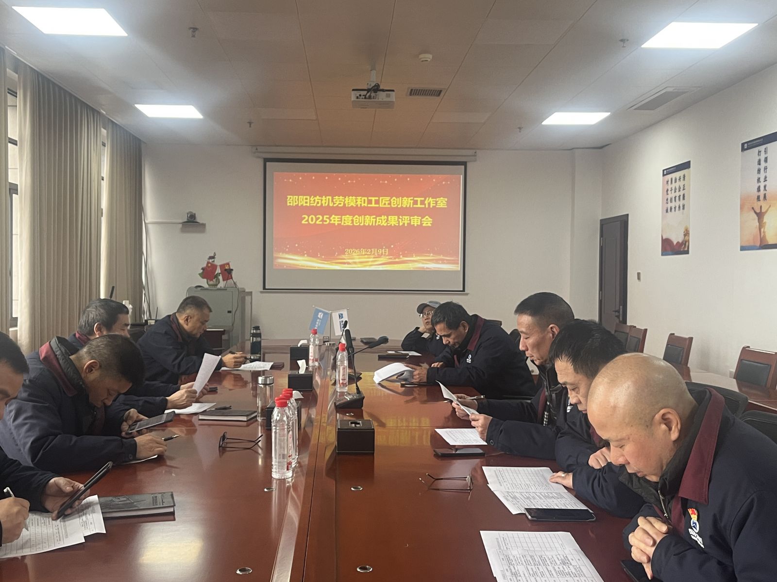 2026年2月9日下午,邵阳纺织机械有限责任公司劳模和工匠创新工作室2025年度创新项目评审会顺利召开。邵阳纺机劳模和工匠创新工作室评审委员会对年度创新成果开展专业评审。会议由公司副总经理、工作室负责人吴继发主持。